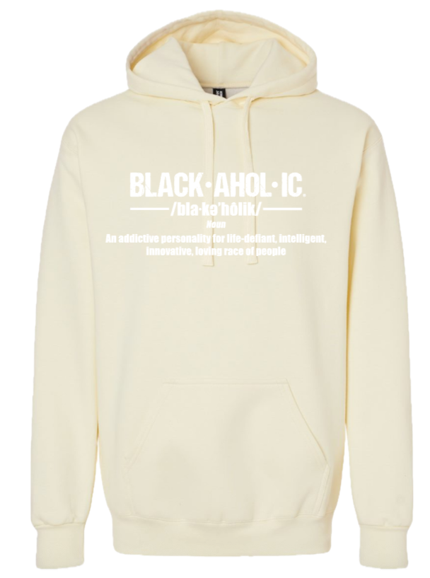 The Blackaholic Classic Hoodie Off White is built for everyday wear with a deeper meaning. Featuring the bold BLACK·AHOL·IC. logo across the chest, this hoodie represents strength, pride, and identity—without saying a word.